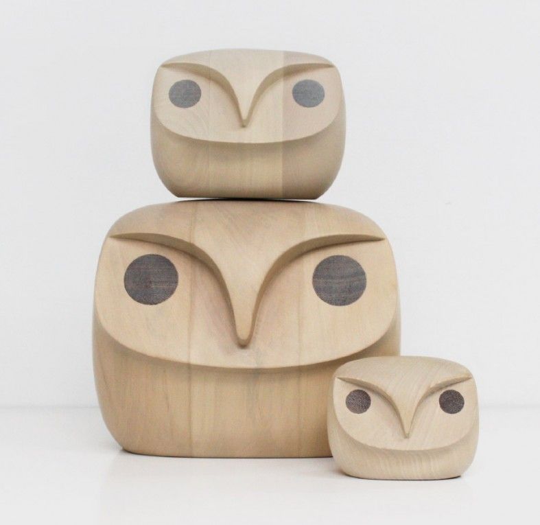 The owls are the result of the first collaborative project between StokkeAustad and Andreas Engesvik, Oslo. They were originally made for the exhibition Designblok in Prague. The Owls were modelled in polystyrene and then milled out of solid wood.